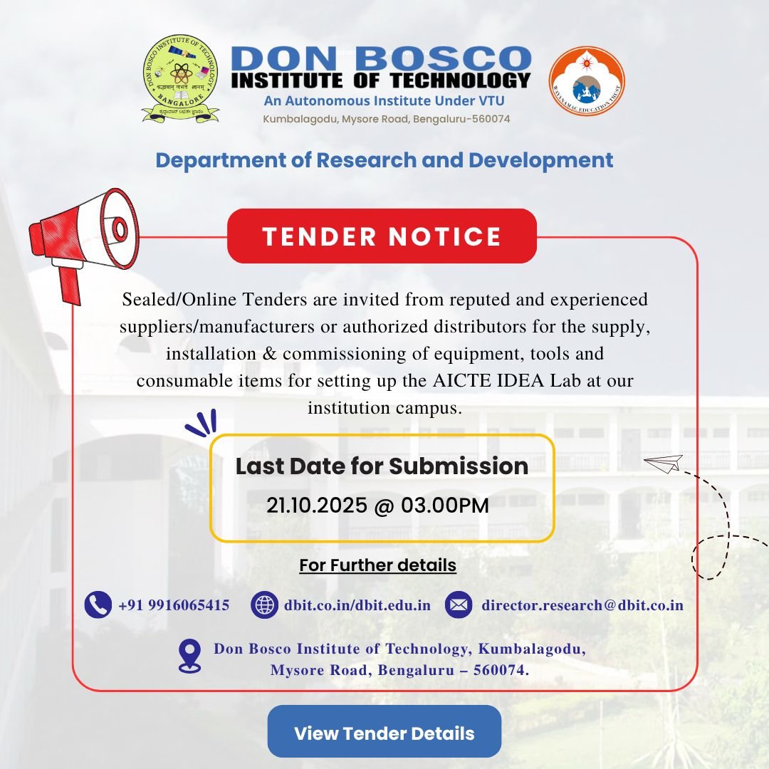 Don Bosco Institute of Technology's vision is to be the distinguished center of excellence, to nurture and transform the talent of millions through quality and value-based education in the areas of Technology, Management through its innovative facilities that promote higher learning.